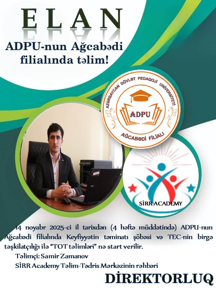 26 dekabr 2025-ci il tarixdə ADPU-nun Ağcabədi filialında Keyfiyyətin təminatı şöbəsi, "İctimai, təbiət fənləri və onların tədrisi texnologiyası" kafedrası və “Hüquq Dünyası” Hüquqi Təbliğat İctimai Birliyinin birgə təşkilatçılığı ilə "Humanitar…